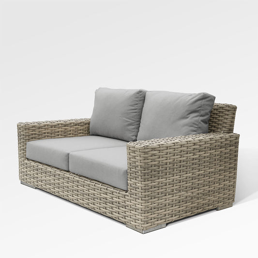 Contemporary and architectural shapes in a chunky wicker weave with dimensional variations in hue and a naturally textured finish.