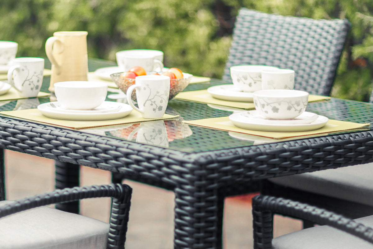 We use tempered glass sheets for all our tabletops. Weather resistant, sturdy, and sized precisely to avoid overhang, these are made to last.