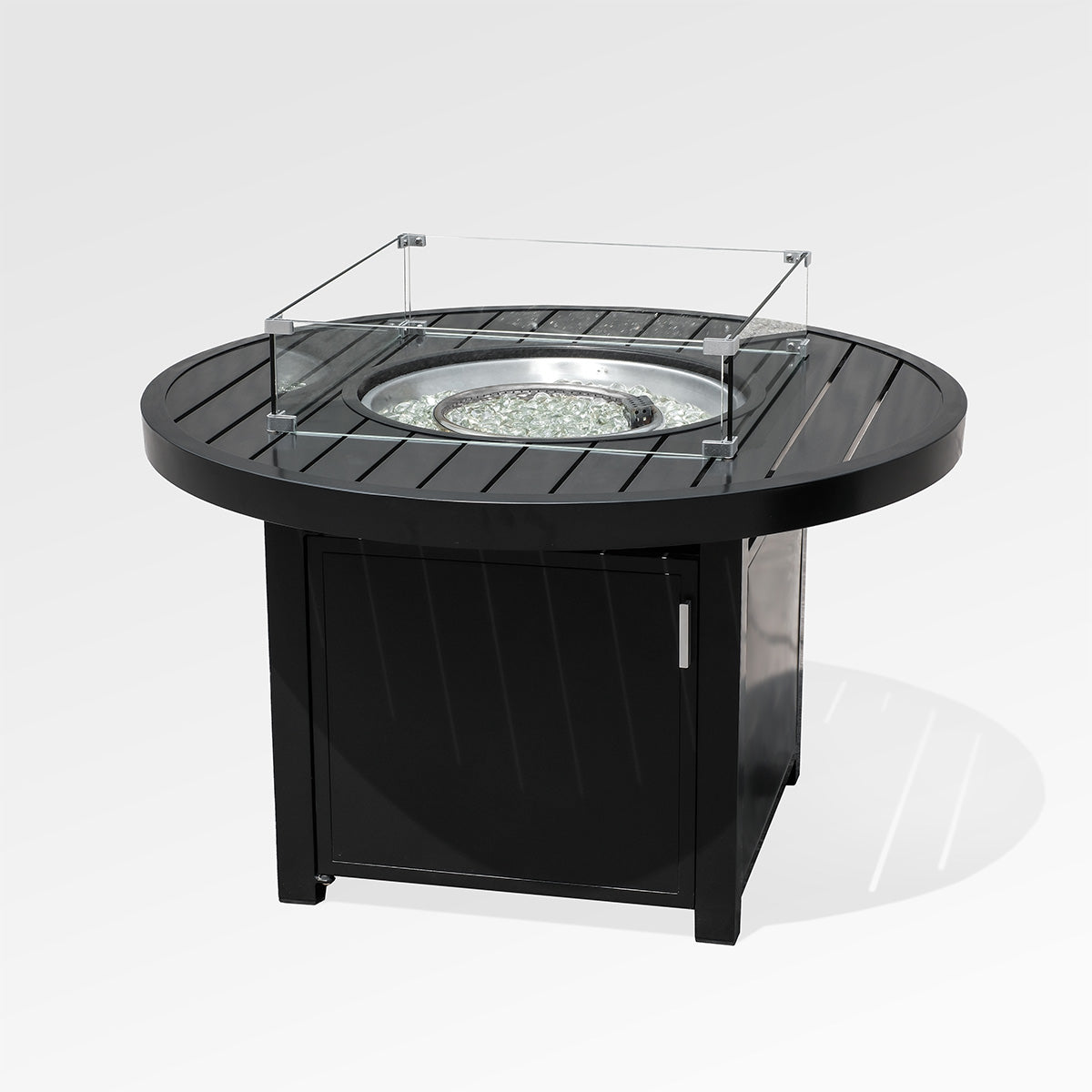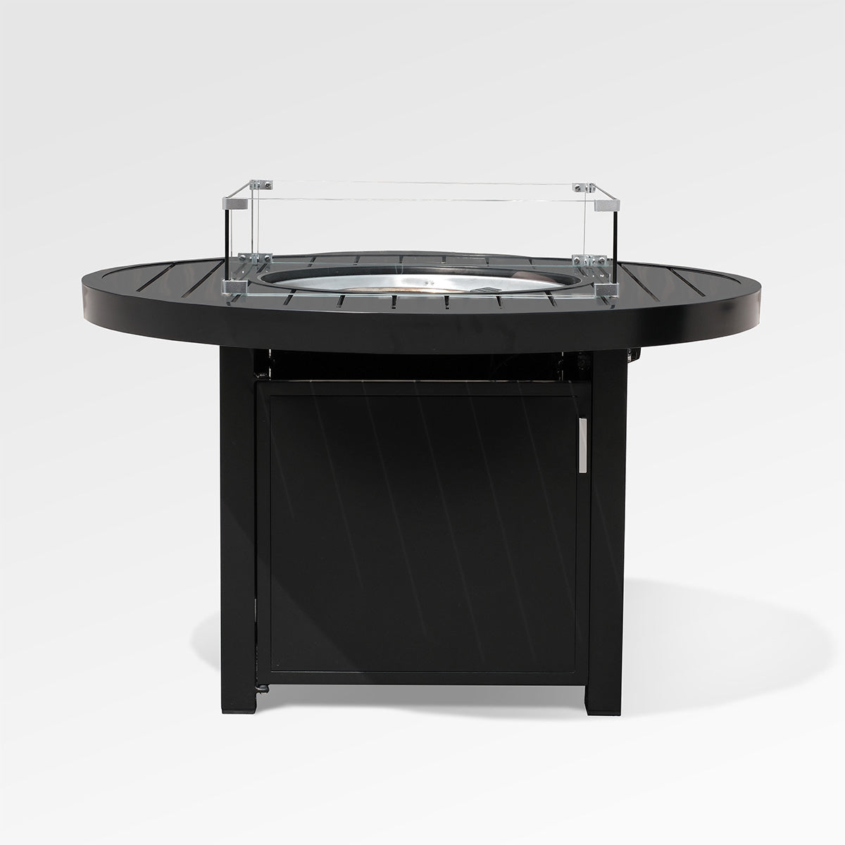 - Glass windguard promotes a stable flame and greater safety during firepit use