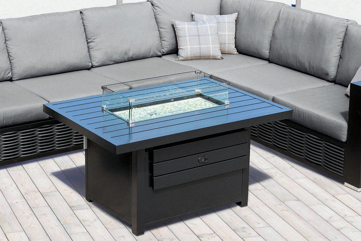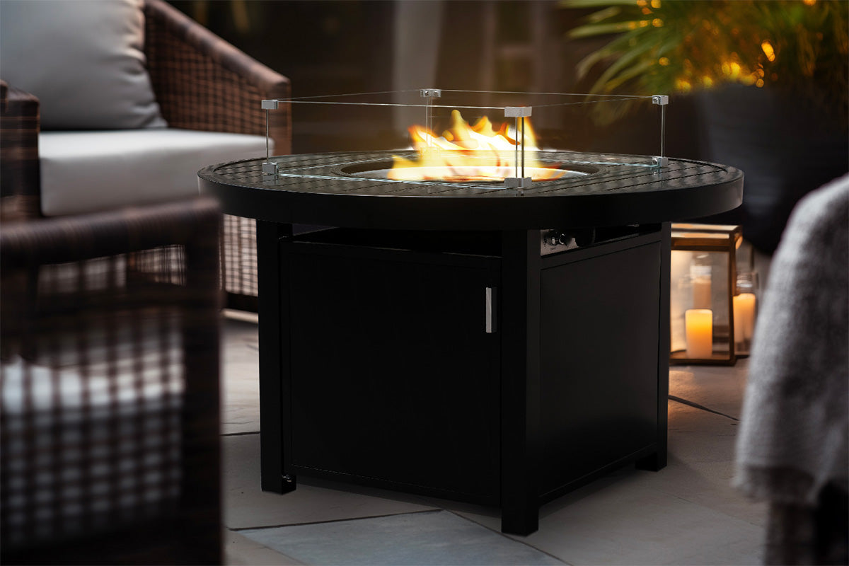 From cool mornings to chilled nights, make the most of patio season with the warmth and light of a fire pit. Don't let a cold day keep you indoors: glass beads help retain heat while the glass windguard keeps the flame steady so you can cozy up with peace of mind. The included lid turns the spacious table top into the perfect multitasking piece to gather around for a delicious meal or lively conversation.
