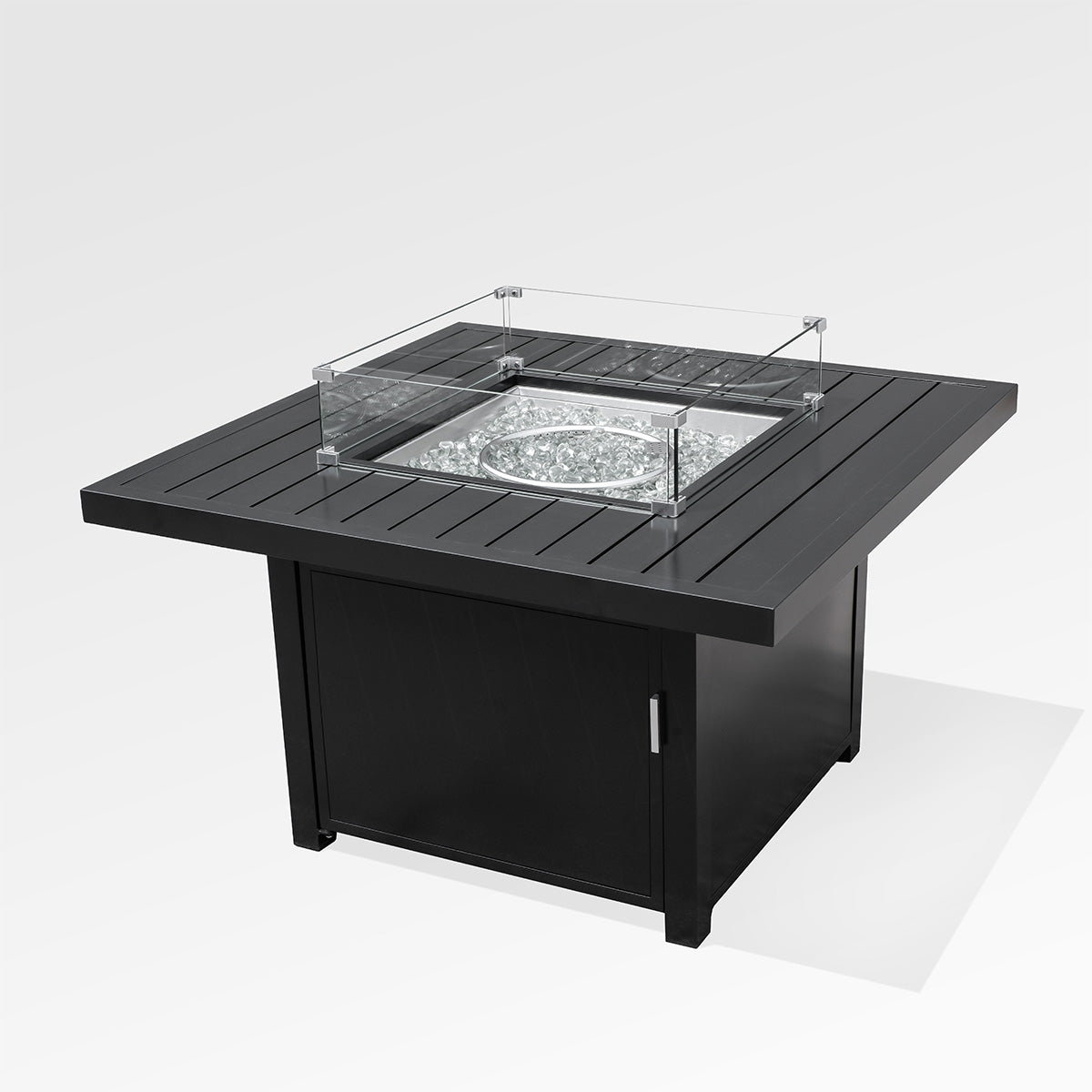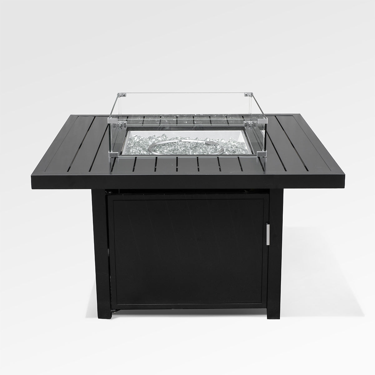 Outdoor Black Aluminum Square Fire Pit Table with Wind Guard & Cover